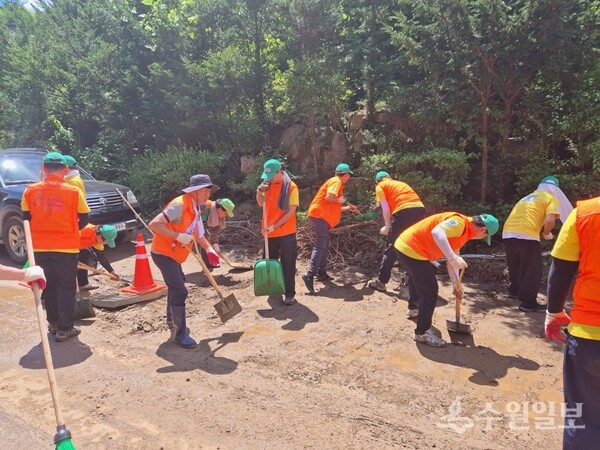 수해 현장을 찾아 복구 작업을 진행하였습니다.